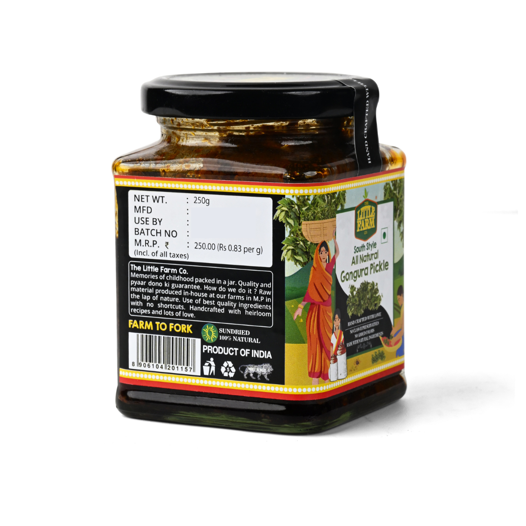 The Little Farm Co. Homestyle Gongura Pickle is the South Indian Receipe with the special flavour of Gongura Leaves.
