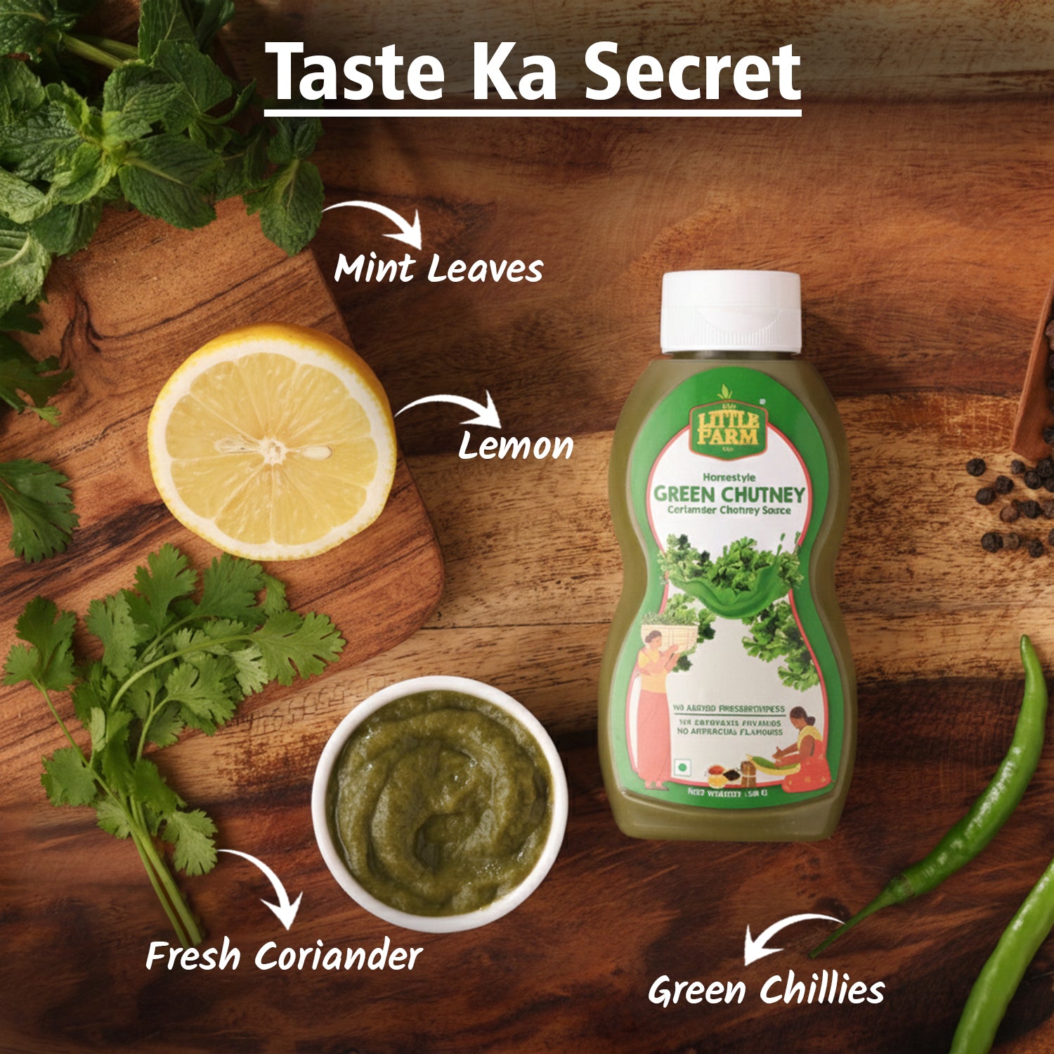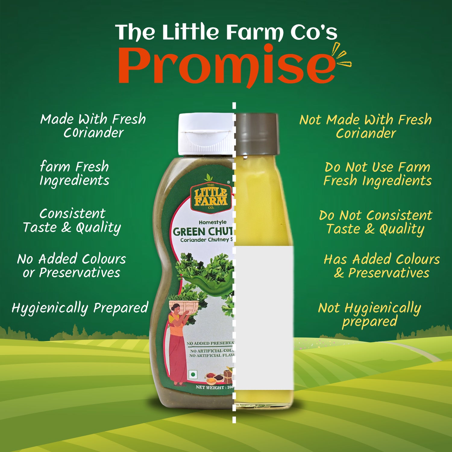 The Little Farm Co. Homemade Green chutney made with traditional recipe. It's like reminiscing about your childhood memories.